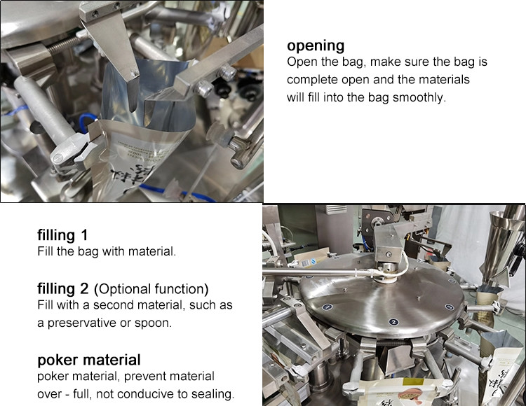 | Werkstroom | Gevenzak→Codering→Openingzak ((of Open zipperzak)→Vullen→Auxiliary→Exhaust→Heat sealing→Formeren en productie van producten. | ||
