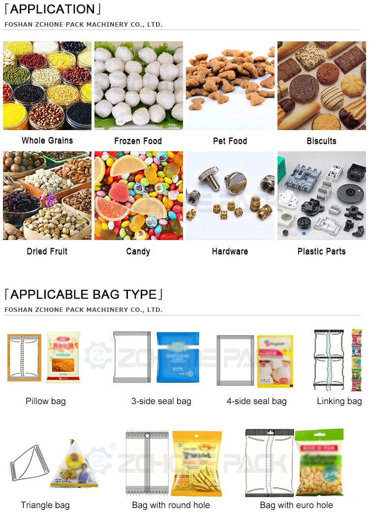 Geschikt voor vele soorten meetapparatuur, en verpakken verschillende soorten producten; zoals opgeblazen voedsel, garnalen rollen, pinda's, popcorn, maïsmeel, zaden en suiker, enz.snij en korrels.