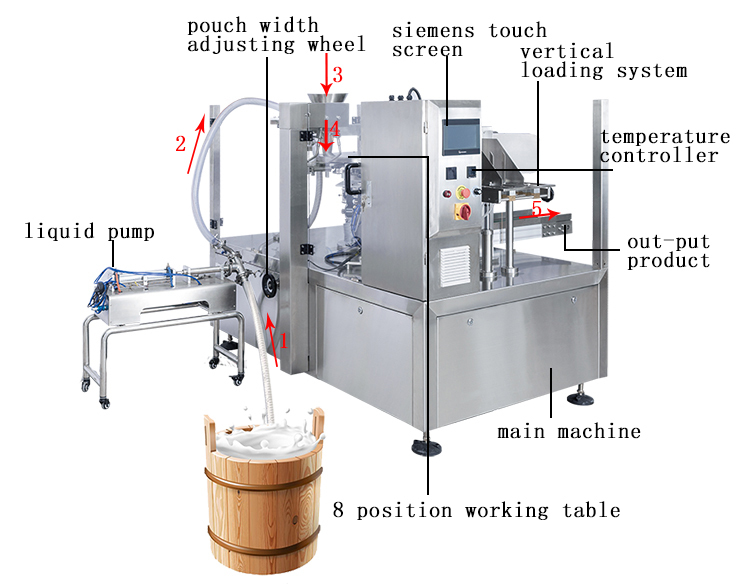| Markeren | hydraulic drive liquid packaging machine,fully automatic beverage packaging equipment,eight-station food packing machine |